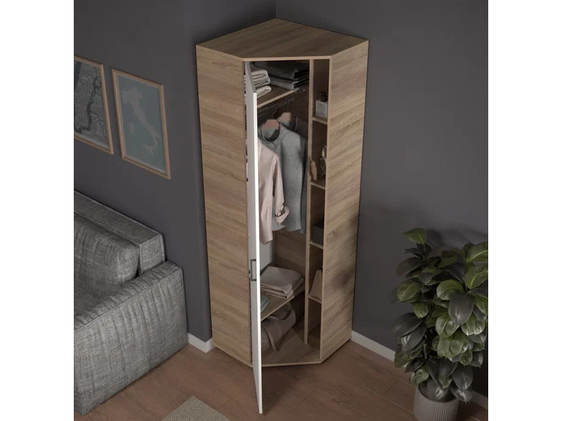 - Шкаф угловой со штангой и полками арт. 522 дуб сонома/белый