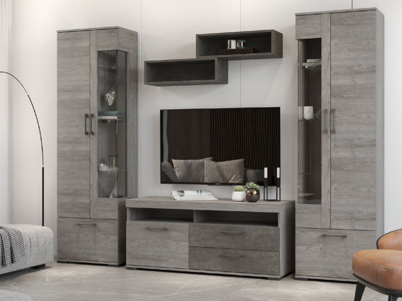 - Пенал Д-3п со стеклом правый Денвер Риббек серый