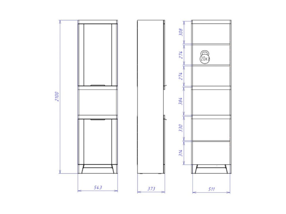 максимальная нагрузка на полку - 20кг.