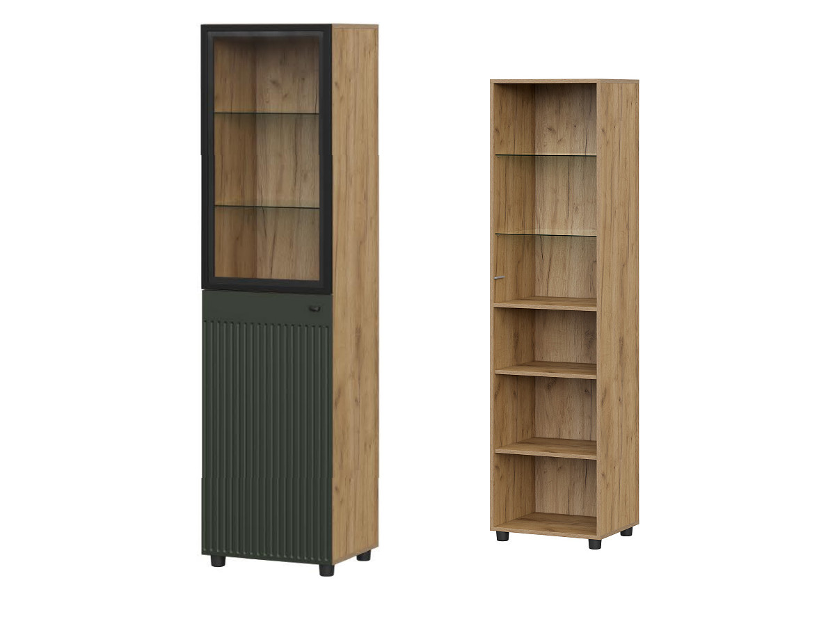 - Пенал со стеклом Милан Дуб Золотой/Олива Софт