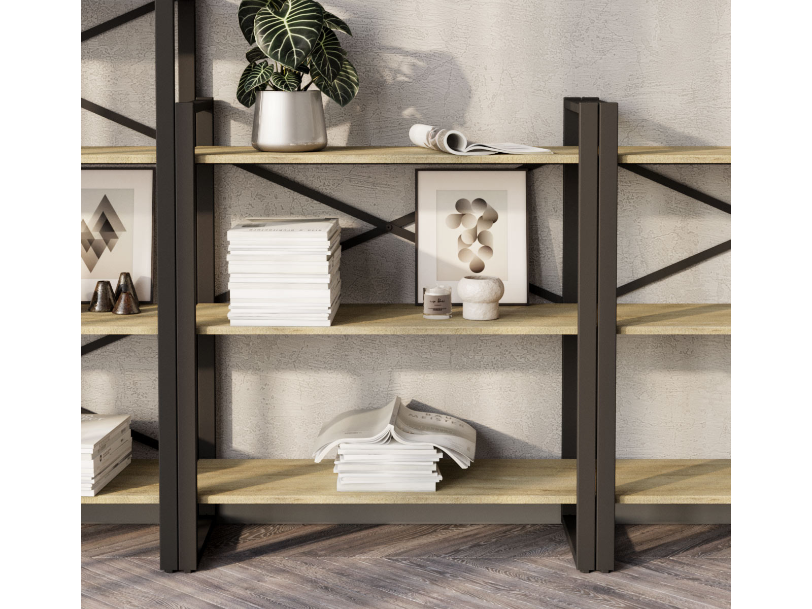 Сборно-разборный прочный металлический каркас стеллажа "Хардвиг S" выполнен из профильной трубы толщиной 40*20 мм. Дополнительную прочность всей конструкции добавляет стяжка, которую можно установить в любом проёме между полок. Сами полки выполнены из экологичного материала МДФ, облицованного влагостойким декоративным покрытием.